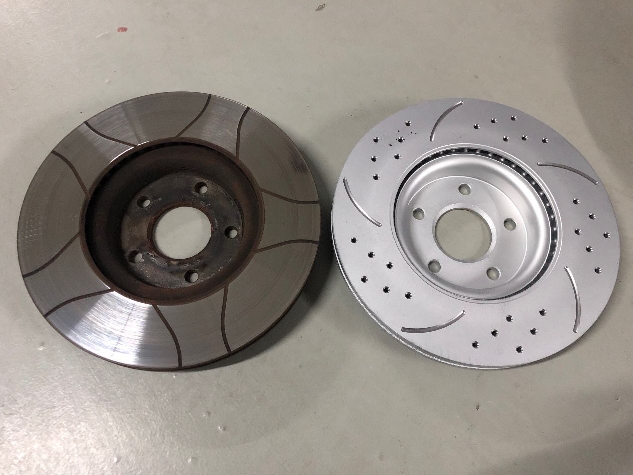 热衰减,究其原因是因为过热,加强散热性能在很大程度上就能避免热衰减。为了更好地冷却制动盘片,使用通风制动盘就能大幅提高散热效率,对于某些性能车,还有加强通风的制动盘,通过打孔或开槽的方式,能进一步改善冷却效果。
