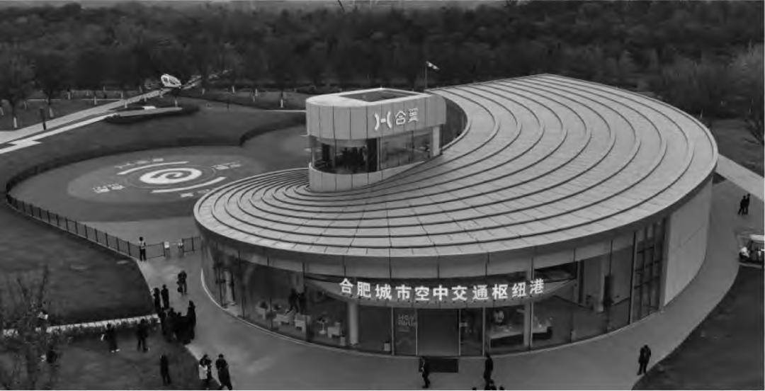 2024年11月13日,第十五届中国国际航空航天博览会上,广东汇天航空航天科技有限公司研发的“陆地航母”飞行汽车正式问世,成为兼顾空中飞、陆上开的两栖车,融合了高端智能汽车、低空飞行、城市立体交通等产业发展热点,在制造业的战略地位突显。“低空经济”的发展,离不开低空基础设施的建设。目前,全球范围内低空载人飞行器航站点的基础设施建设正处于起步阶段。在国内,一些城市已经开始了相关的基础设施建设,如合肥、深圳、上海等地均已建立了低空飞行器起降坪,并配备了相应的空中指挥调度中心、安检候乘机楼、充电维修区等基础设施。合肥城市空中交通枢纽港(如图1所示)是2024年11月在骆岗公园正式建成投入运营的低空航站中心,集展示、文旅、低空通勤等功能于一身,旨在打造以此为核心应用的低空生态场景。笔者基于“低空经济”下的政策环境,对配套航站基础设施建设现状进行分析。
